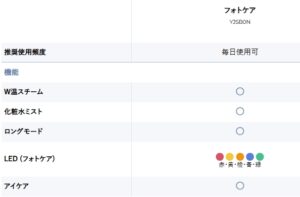 先ほどもお伝えしましたが、フォトケアYJSB0Nの最大の特徴はアイケアモードが搭載されていることです。目元回りのケアに力を入れたい方にはフォトケアYJSB0Nがおすすめです。